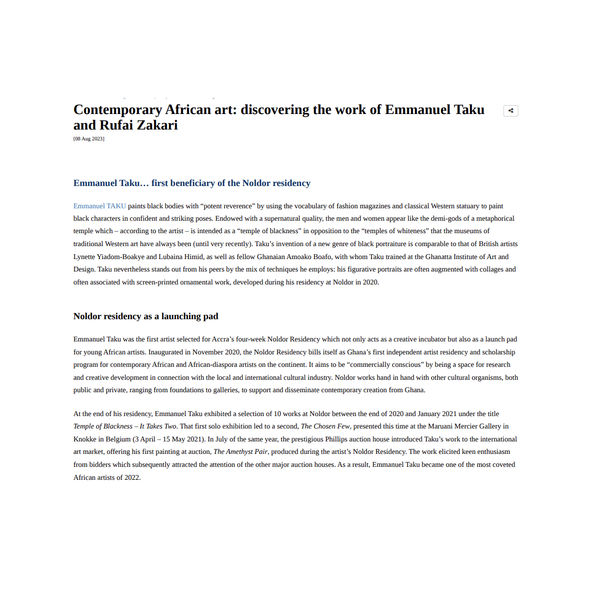 Contemporary African art: discovering the work of Emmanuel Taku and Rufai Zakari