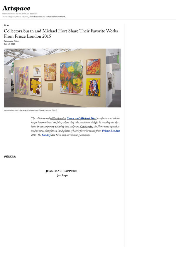 • Collectors Susan and Michael Hort Share Their Favorite Works From Frieze London 2015