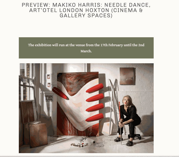 PREVIEW: Makiko Harris: Needle Dance, art’otel London Hoxton (Cinema & Gallery Spaces)