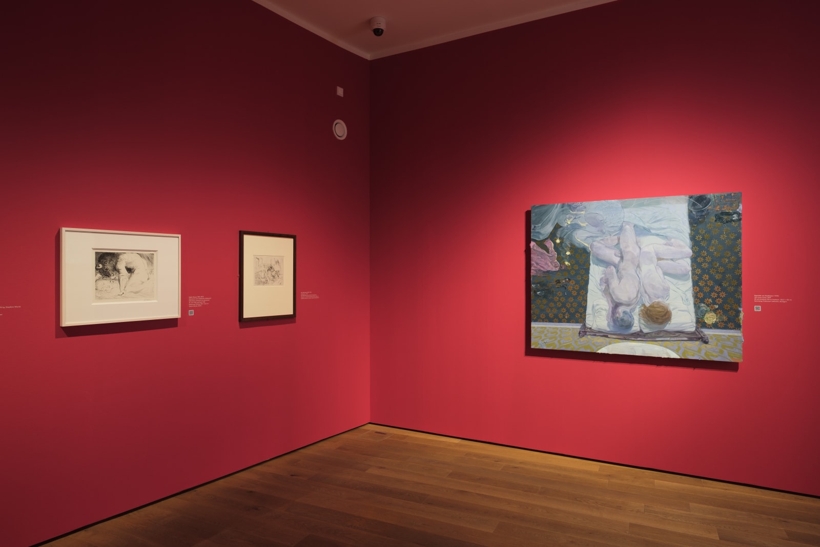 Privacy: Lovers, women and men grooming themselves, dressing, making themselves up, and posing in front of the mirror are motifs of the private sphere. In their private space, each person can develop and behave freely and unobserved. Examples of works by Edgar Degas, Pierre Bonnard, and the Brücke artists, as well as contemporary artists, depict the home as the place where we move around naked and unashamed and take care of ourselves entirely.